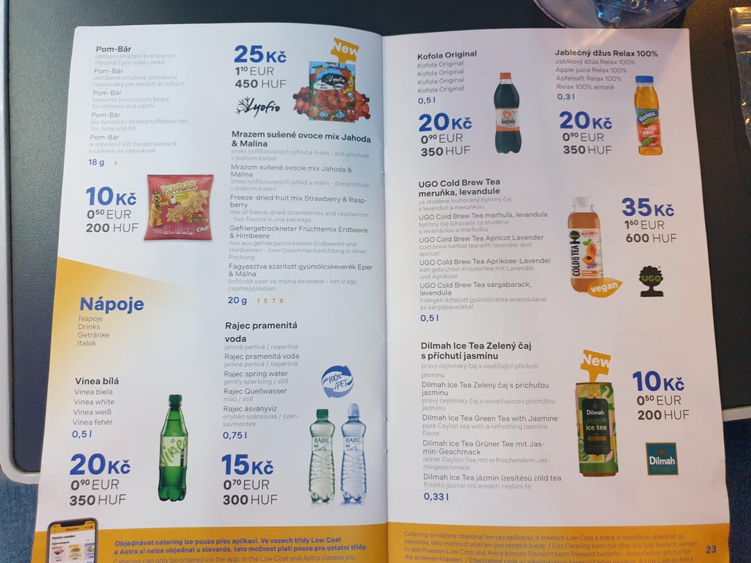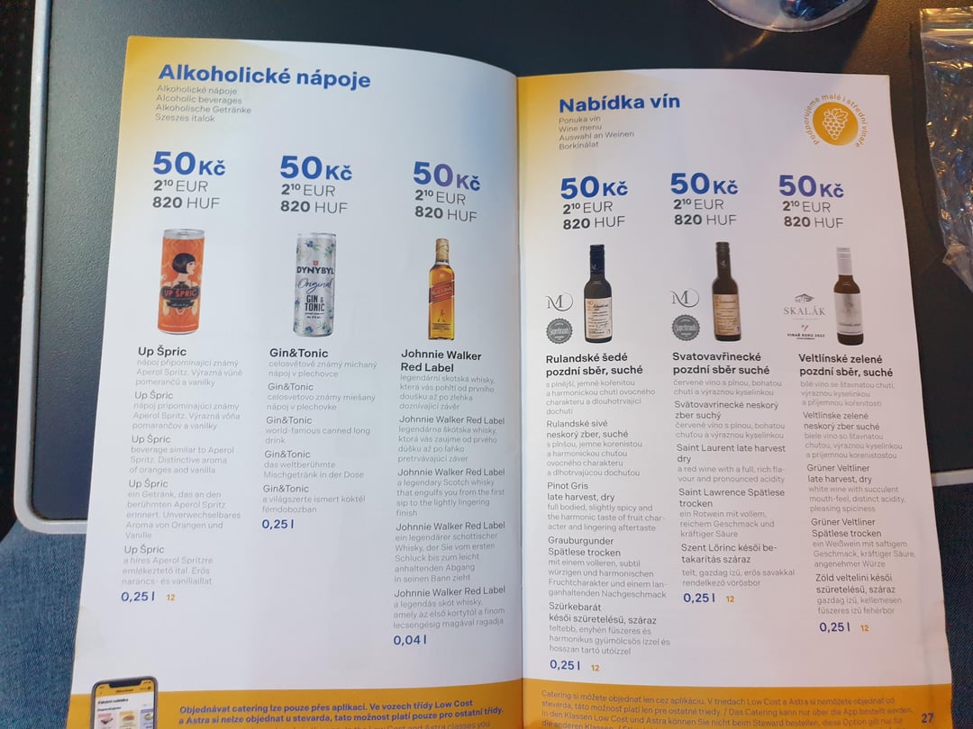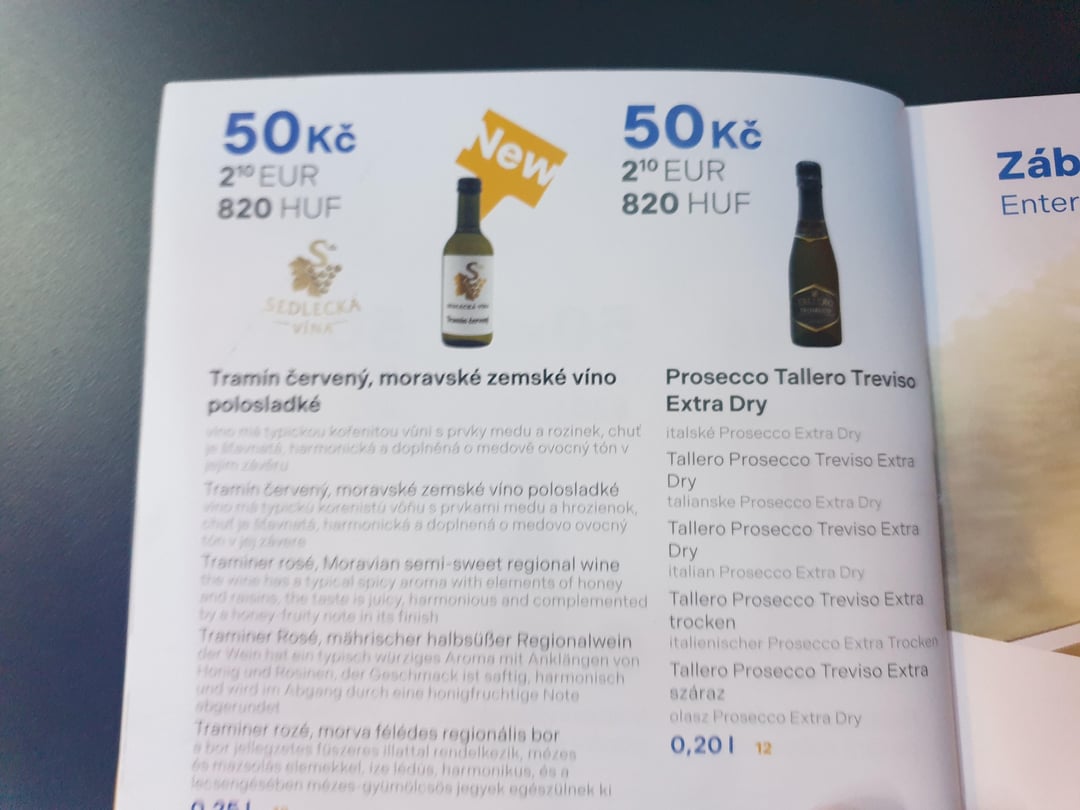 さらに、ミネラルウォーターのボトルとコーヒー1杯が料金に含まれています(ウィーン-プラハ-ウィーン2人で59ユーロ、本来なら79ユーロですが、バレンタインデーにちなんで1人の往復航空券の料金が免除され、約20ユーロでした)。