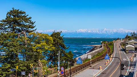 日本海と立山連峰の眺めを同時に堪能できる富山湾岸サイクリングコース