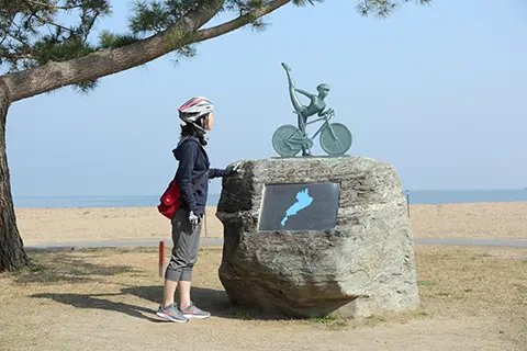 滋賀県守山もりやま市(琵琶湖東岸)の第二なぎさ公園に設置された「琵琶湖サイクリストの聖地碑」はフォトスポットにもなっている。