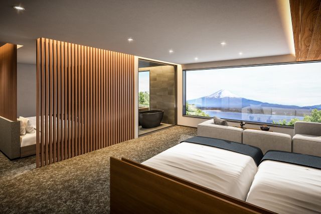 プライベートサウナ付きで、富士山と河口湖の絶景とともに最高級の癒やしを満喫。グループやご家族での滞在に最適です。