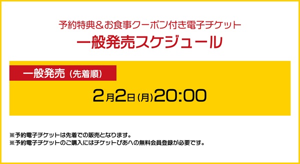 ※一般発売につきましては先着順での販売につきご予約が満了となり次第、受付を終了とさせていただきます。なお、最速先行抽選にて予約満了となった場合、一般発売はございません。あらかじめご了承ください。
