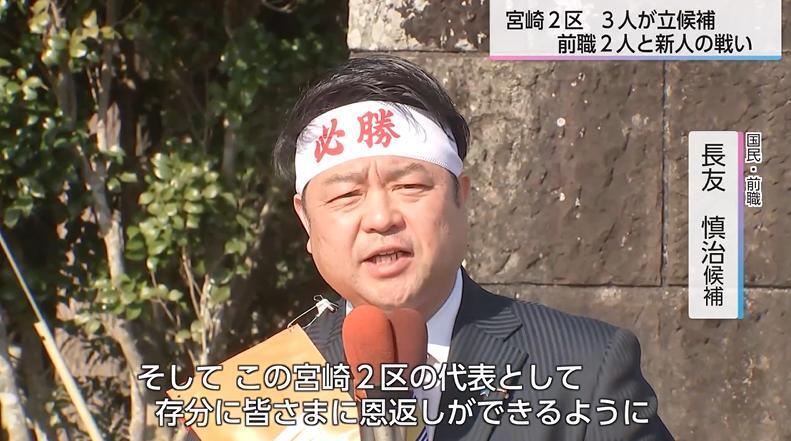宮崎3区は、前職のみが立候補を表明し、無投票の可能性もささやかれたが、公示直前に参政の新人が立候補を表明し、一転、一騎打ちの選挙戦となった。