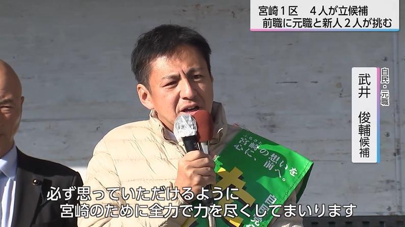 宮崎1区には、4人が立候補した。中道の前職に自民の元職と維新、参政の新人が挑む。