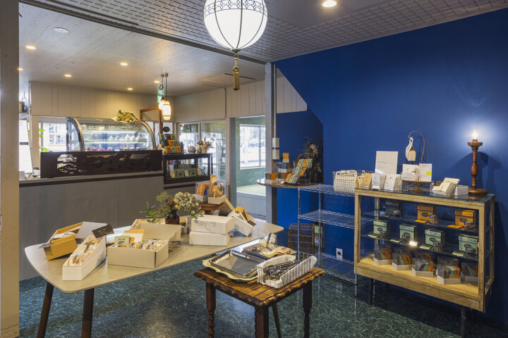 店に入ると、群青色の壁に目を奪われます。売場と作業場の境目を無くしたオープンキッチンでは、スタッフが手際よく作業をする姿を間近に見ることができます。