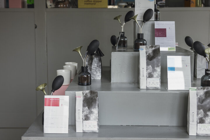 コーヒー豆とアメリカ発の紅茶ブランド「STEVEN SMITH TEAMAKER」の厳選された紅茶を販売し、アロマディスプレイで香りを確かめることができます。