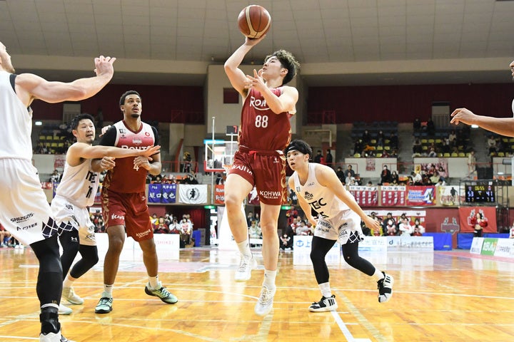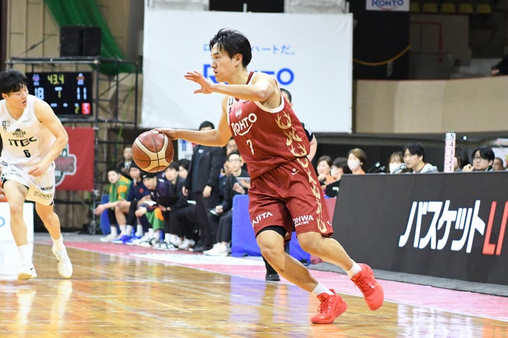 スターティング5は、#0 小林遥太選手、#4 ジェイミン・ブレイクフィールド選手、#11 ナイジェル・スパイクス選手、#18 相馬卓弥選手、#24 本多純平選手。