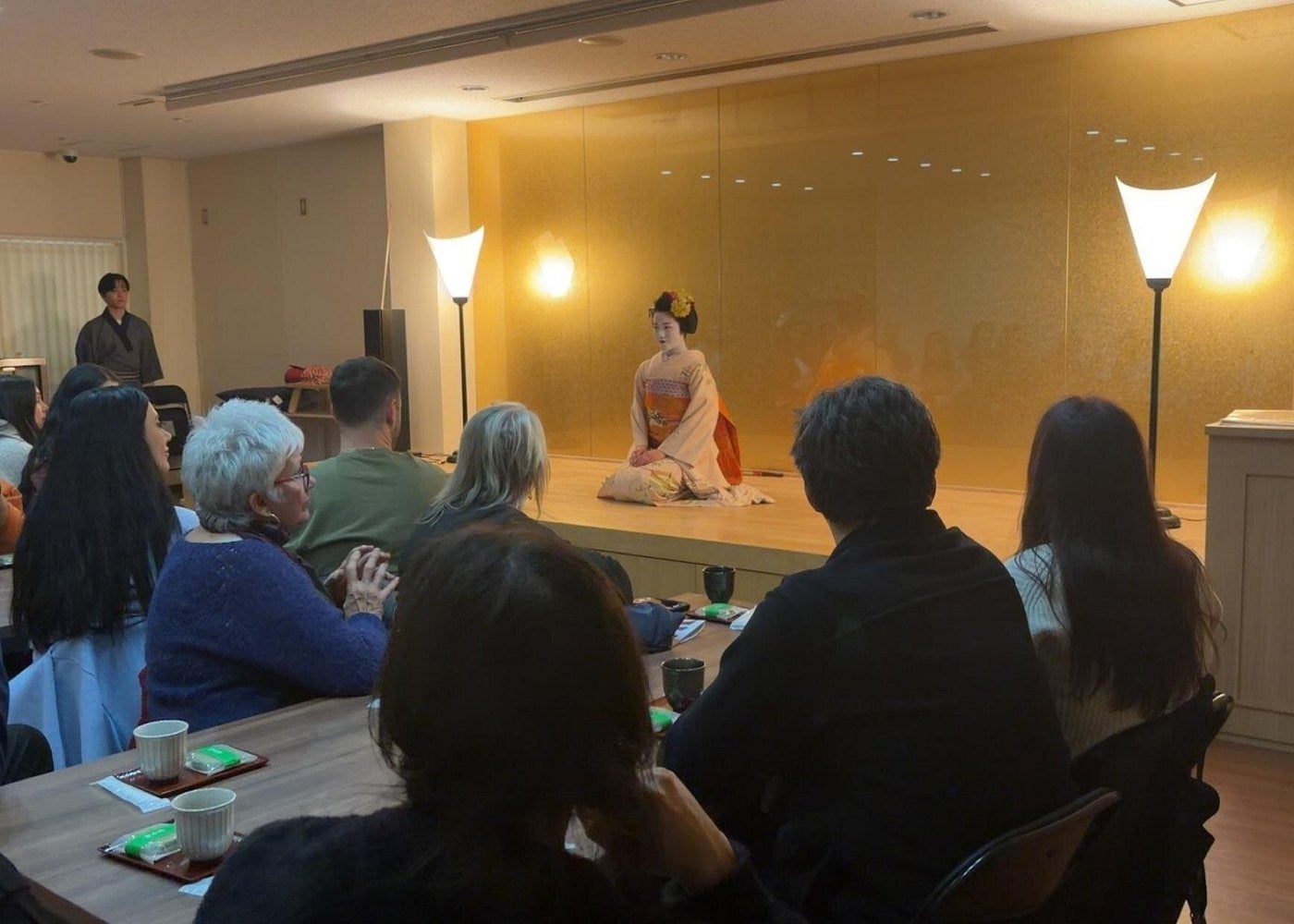 京都最古の花街・上七軒では、深い歴史をもつ老舗お茶屋「梅乃」と提携し、本物の舞妓による演舞を旅行者が間近で体験できるツアーを提供しています。