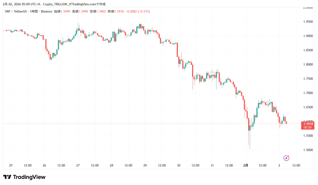 (参考 TradingViewのXRPUSDTチャート 1時間足)