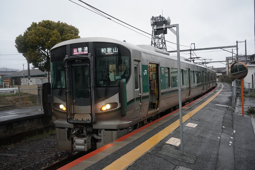 かつては古い105系が走る路線でしたが、現在は最新鋭の227系が走る路線でもあります。