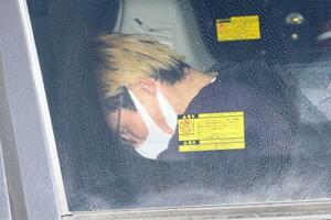 送検のため愛知県警豊田署を出る北島卓容疑者=2日午前8時31分