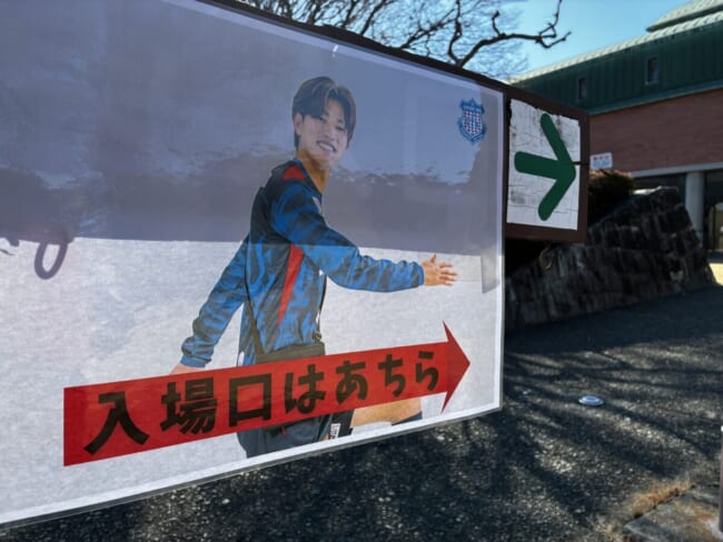 山梨県中巨摩郡富士川町で2月1日に開催された”明治安田J2・J3百年構想リーグ ヴァンフォーレ甲府キックオフイベント(@はくばく文化ホール)。一瀬大寿が会場入り口を案内。