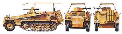 キット全長は約137mmで、大型フレームアンテナや無線装置を備えた室内を再現。フロントに搭載したマイバッハ製エンジンも再現しており、ロンメル将軍と兵士3体の人形が付属する。またデカールはグライフ、アドラーのマーキングに加え、北アフリカ戦線、ヨーロッパ戦線用をセットしている。