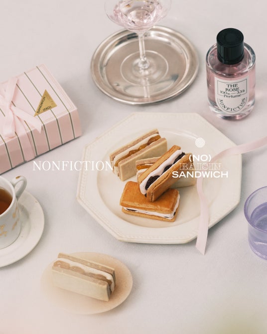株式会社NRS(本社:東京都品川区 代表取締役:奥山紗季子)による菓子ブランド「(NO) RAISIN SANDWICH(ノーレーズンサンドイッチ) 」は、韓国発ライフスタイルビューティーブランド「NONFICTION(ノンフィクション)」とのコラボレーションバターサンド「“THE ROSE” BUTTER SANDWICH for NONFICTION」(ザ・ローズ バターサンドイッチ for ノンフィクション)を発売いたします。ノーレーズンサンドイッチでは2月13日(金)から3月4日(水)にNEWoman新宿にて開催するポップアップにて販売。3月8日(日)、10日(火)に公式オンラインショップにて数量限定で販売いたします。また、ノンフィクション 代官山にて、2月9日(月)から3月5日(木)まで期間限定販売いたします。