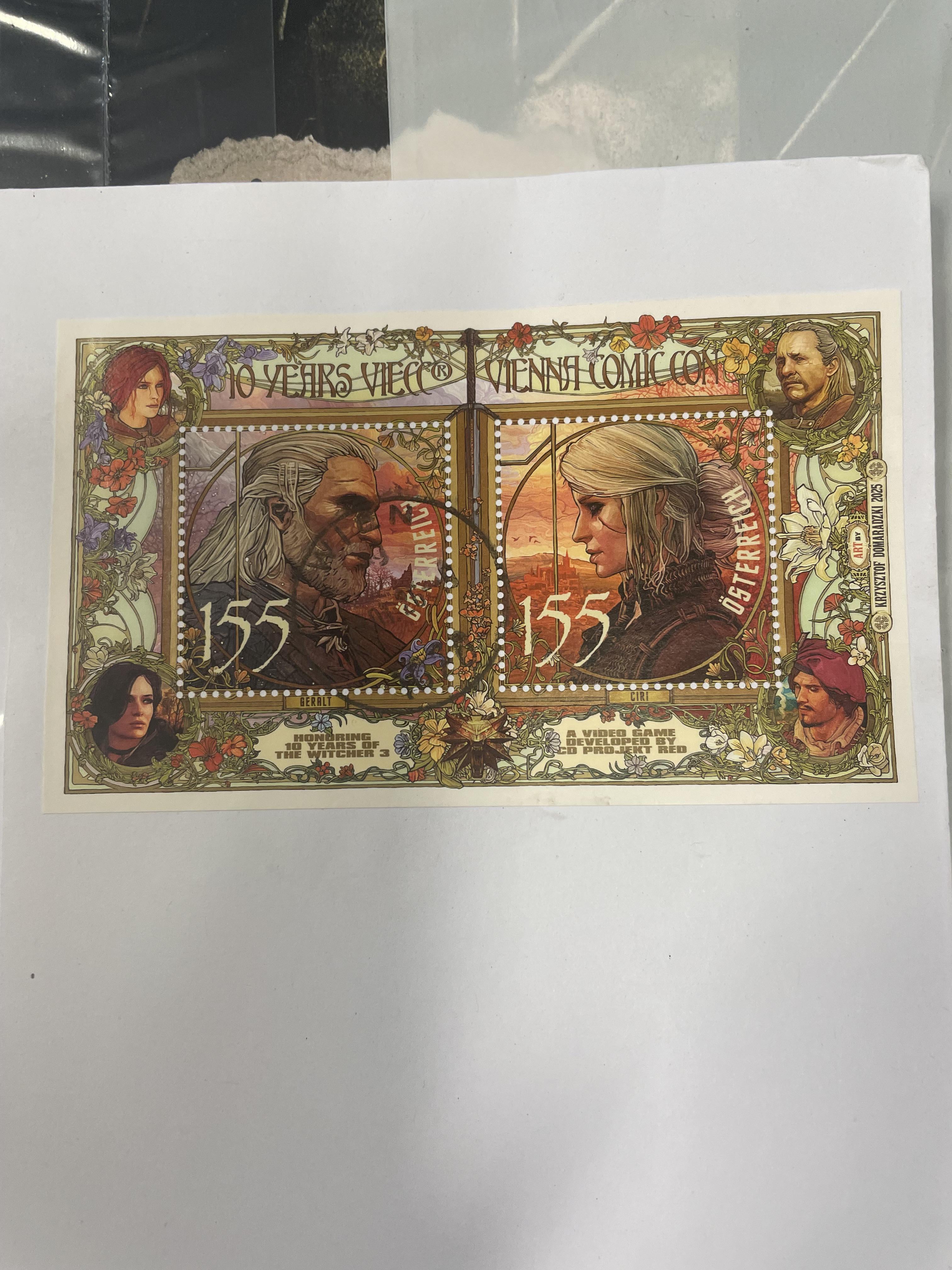 (少し興味深い) 私たちの弁護士は、オーストリア郵便 AG からの 10 年間のウィーン コミコン ウィッチャー 3 の限定 155 セント切手を同封した郵便物を送ります