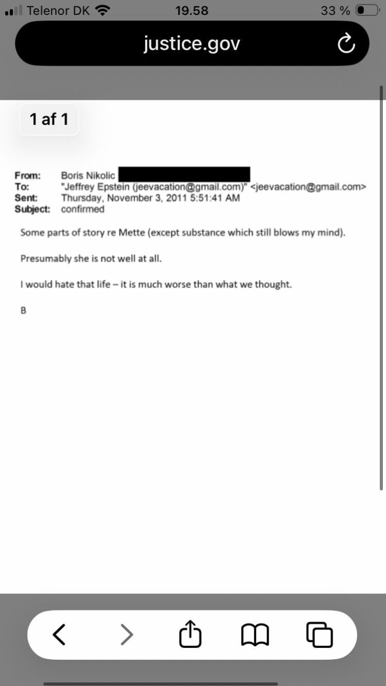 メッテの友人ボリス・ニコリックとエプスタインがここで王女について話していると言っても間違いないと思います。ボリス・ニコリッチは、メッテに関するいくつかの話を「確認」しているが(それが何を意味するかは別として)、彼女は「まったく元気ではない」と推測し続けている。この頃 (2011 年 11 月)、公共のドラマや王室の問題が何かありましたか? ご存知の方はいらっしゃいますか?それとも、単にメッテが自分の人生に満足しておらず、すべてから逃れるための(ひねくれた)方法としてボリスとエプスタインを利用しているのでしょうか?