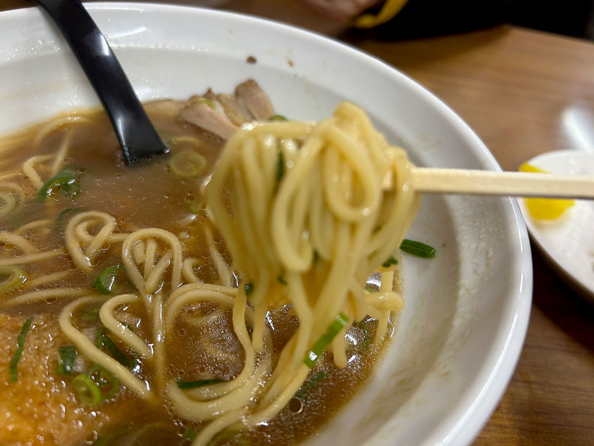 同店スタッフによれば、関西から移り住んだ上山政治さん・ハルエさん夫婦が1948(昭和23)年に今と同じ場所で創業。当初はだしの色は薄く、物足りなかったという。知り合いの精肉店から豚骨を調達し砕いて煮ることで濃いだしを作るようになったという。当時、中華そばは30円だった。