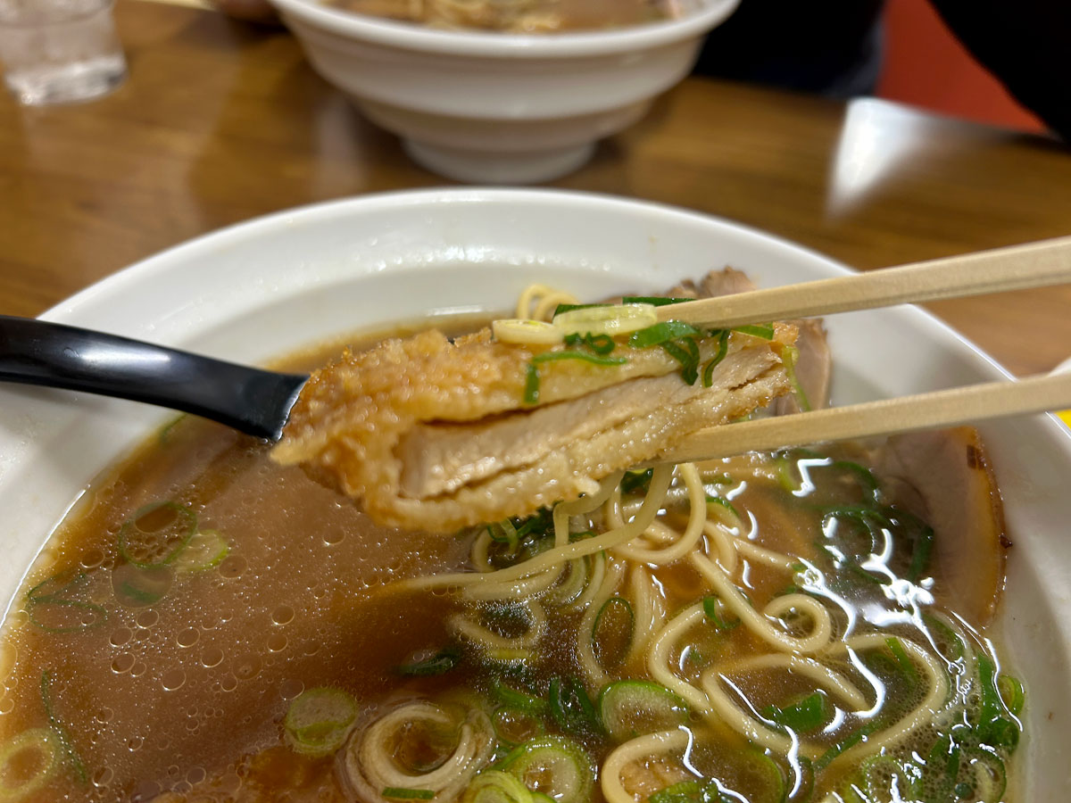 カツラーメンは、ラーメンにカツをのせただけと安易に考えていた。今回は、スープも豚、チャーシューも豚、トンカツも豚というトリプル豚。カツを揚げた油にスープの油。チャーシューやトンカツの脂身。要素は複雑に絡み合うことを初回にして味わった。香りに食感、食べ終わるまでの温度などを考えると奥深く、大食いメニューではなく、岡山で食を楽しむ必須メニューの一つであると実感した。