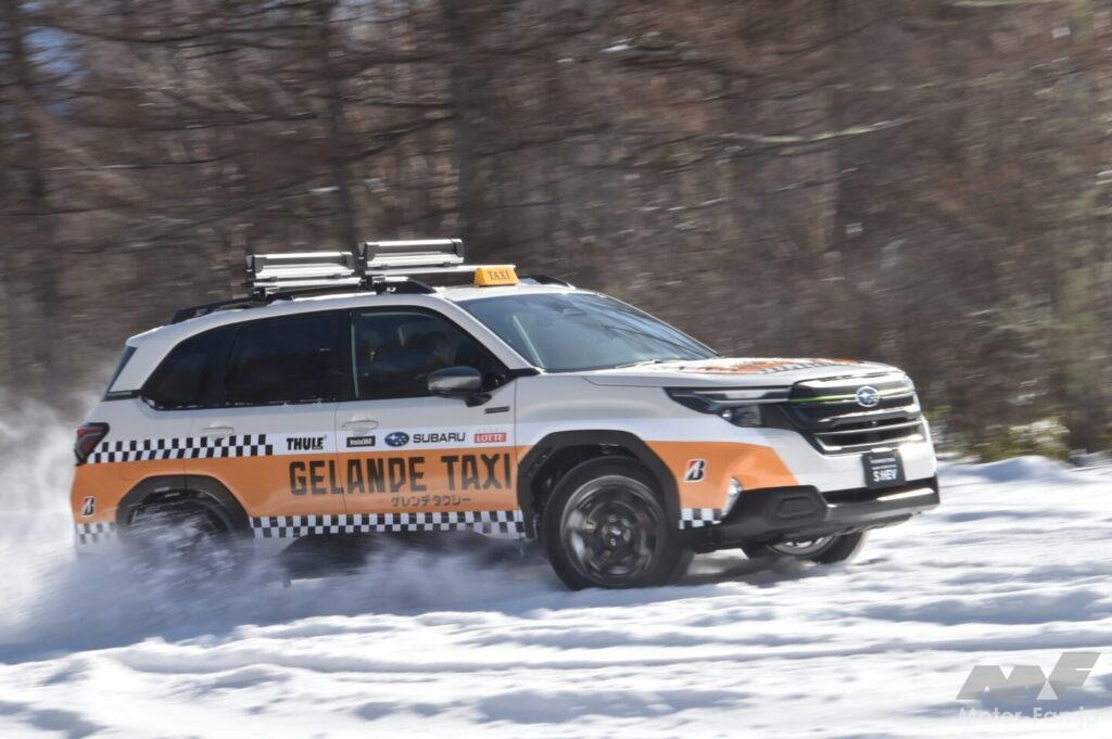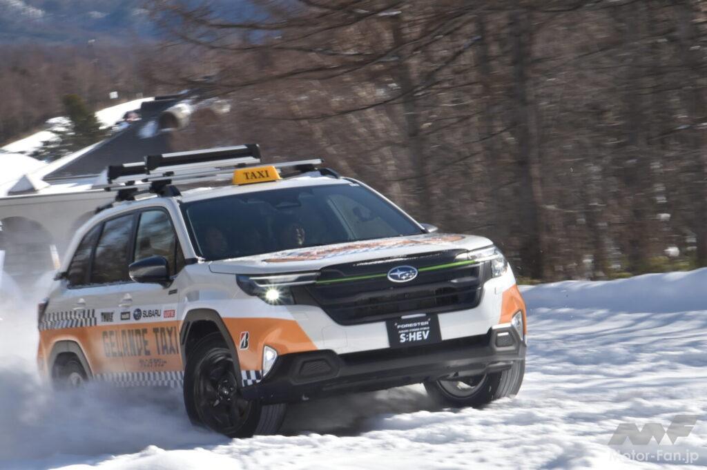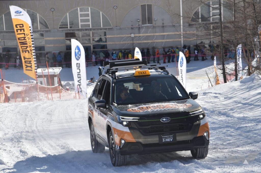 ゲレンデタクシーに用意されたのはクロストレックとフォレスターのいずれもS:HEVモデル。クロストレックS:HEVは2025年のゲレンデタクシーでも走っているが、2025年春に日本発売となった新型フォレスターは初のゲレンデタクシーとなった。