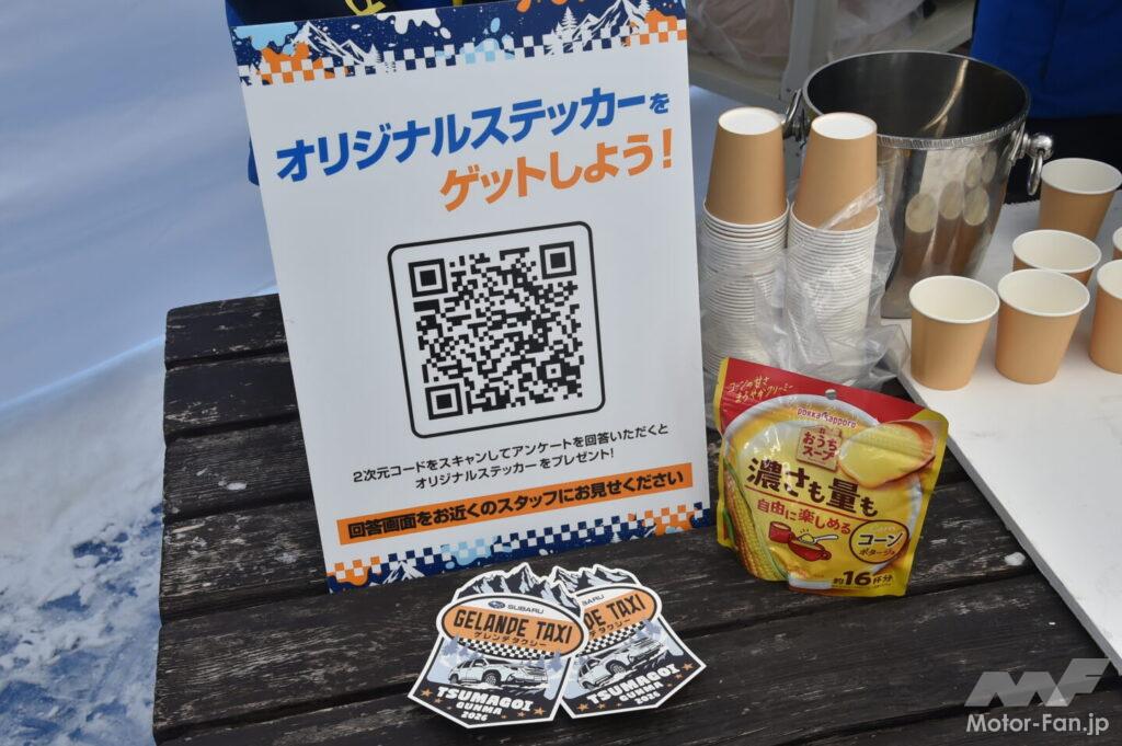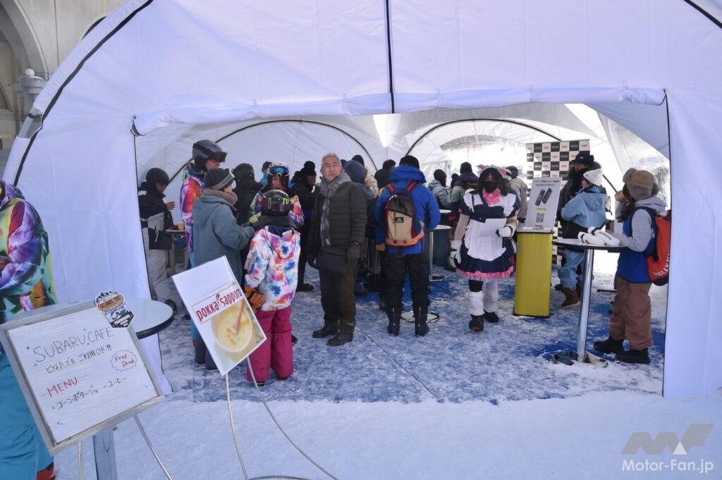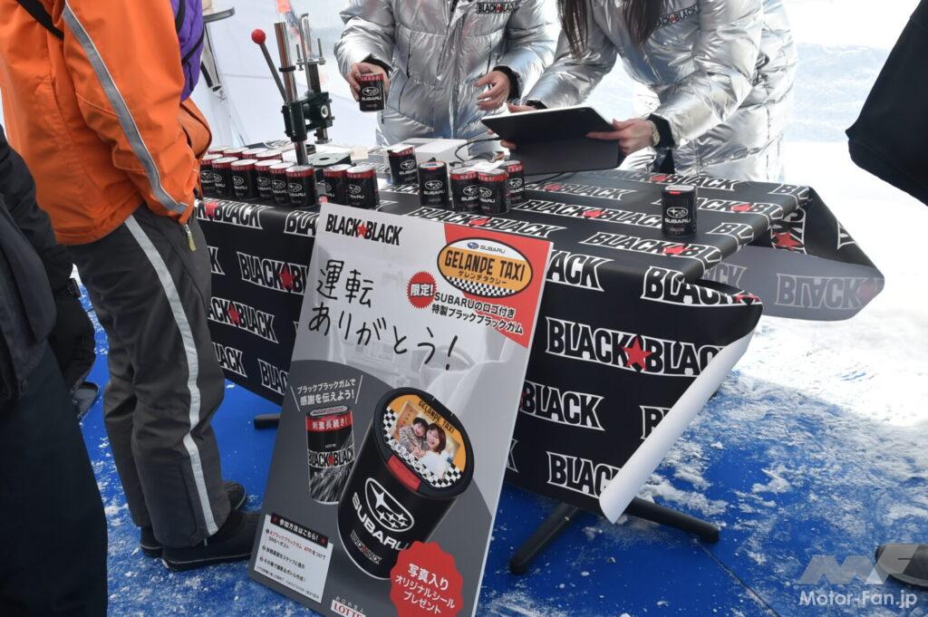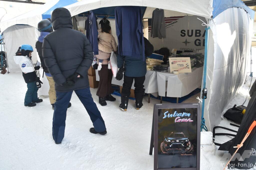 また、会場にはゲレンデタクシーとデモラン意外にもスバルと雪にまつわるコラボブースが並んだ。前述の渋川地区観光物産協会以外にも、FM79.5(エフエムナックファイブ)やスバルUSAのアパレル販売コーナー、スキー・スノーボードキャリアでお馴染みのTHULE(スーリー)、ゲレンデタクシーにスタッドレスタイヤを提供するブリヂストンがブースを連ねた。
