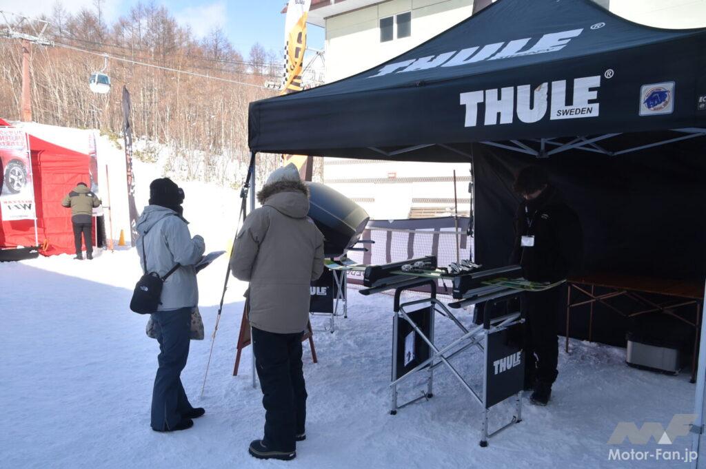 THULEブースではスキー・スノーボードキャリアとルーフボックスを展示。