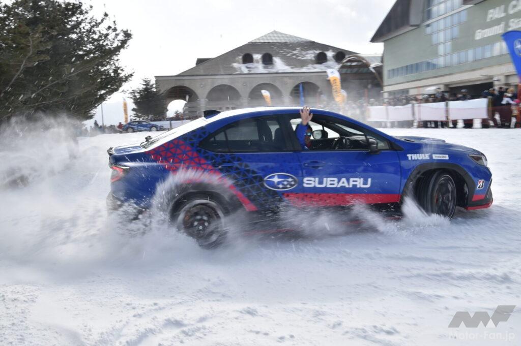 ドライバーはWRCチャンピオンである新井敏弘選手をはじめ、鎌田卓麻選手、川名 賢選手、長尾綱也選手といったラリードライバーに、レーシングドライバーの久保凜太郎選手、蘇武喜和選手。さらにモータージャーナリストの清水和夫氏と山本シンヤ氏がステアリングを握り、スバルAWDでのスノードライブをアテンドした。