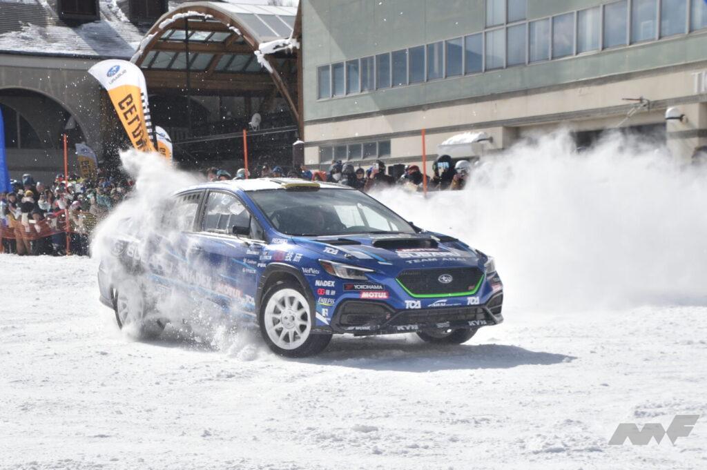 ゲレンデタクシーの醍醐味は同乗走行ばかりではない。トップラリーストがその走りを披露するデモランも注目だ。しかも今回は新井選手が自身が全日本ラリー選手権でドライブするWRXを、鎌田選手が『東京オートサロン2026』でお披露目させれたWRXの6速MTモデル、WRX STI Sport♯をドライブするのだ。