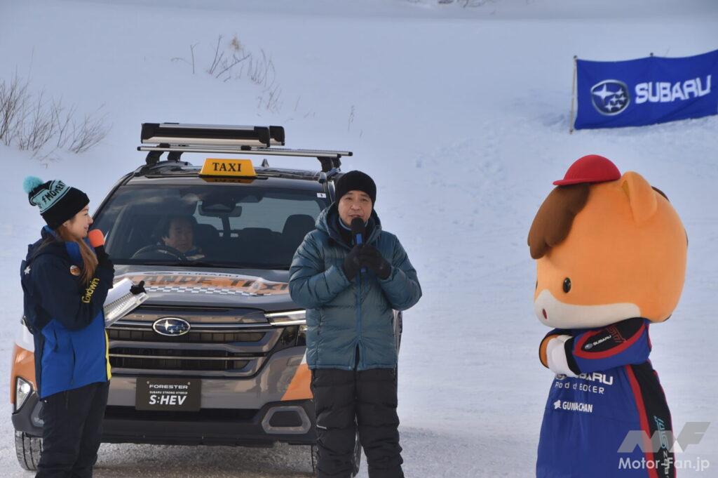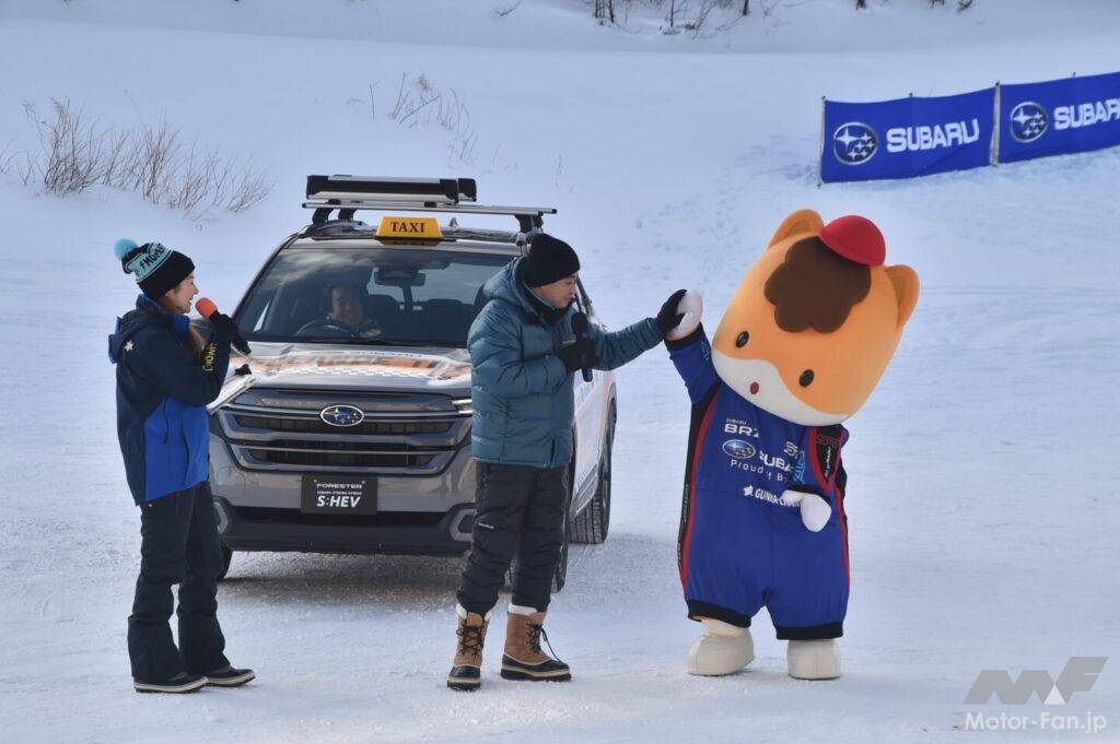 オープニングセレモニーには地元群馬のゆるキャラであるぐんまちゃんと、群馬藤岡市出身のタレントで「ぐんま大使」を務める中山秀征氏がゲストとして登場。群馬愛を語るとともに、自身も体験したゲレンデタクシーでのフォレスターの走破性、ドライバーを務めた新井選手のテクニックに感嘆していた。