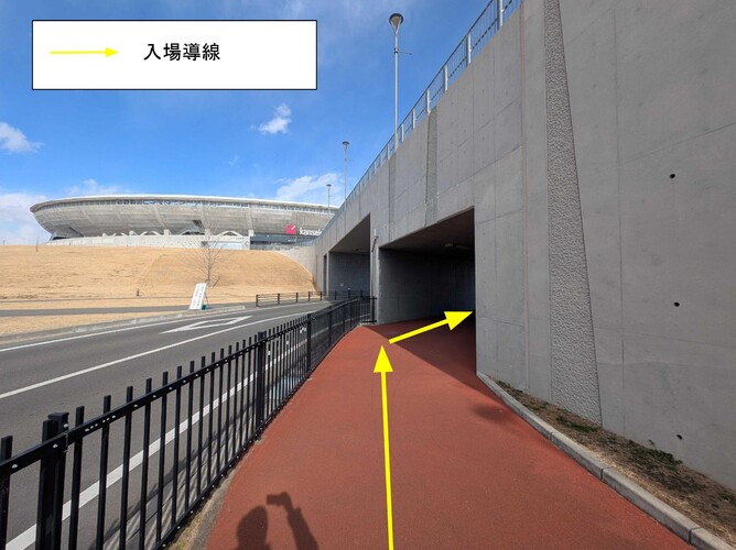 ② アプローチ下をくぐる通路を道なりに進んでください。