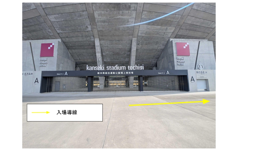 ① Aゲートを正面に見て右へ進んでください。