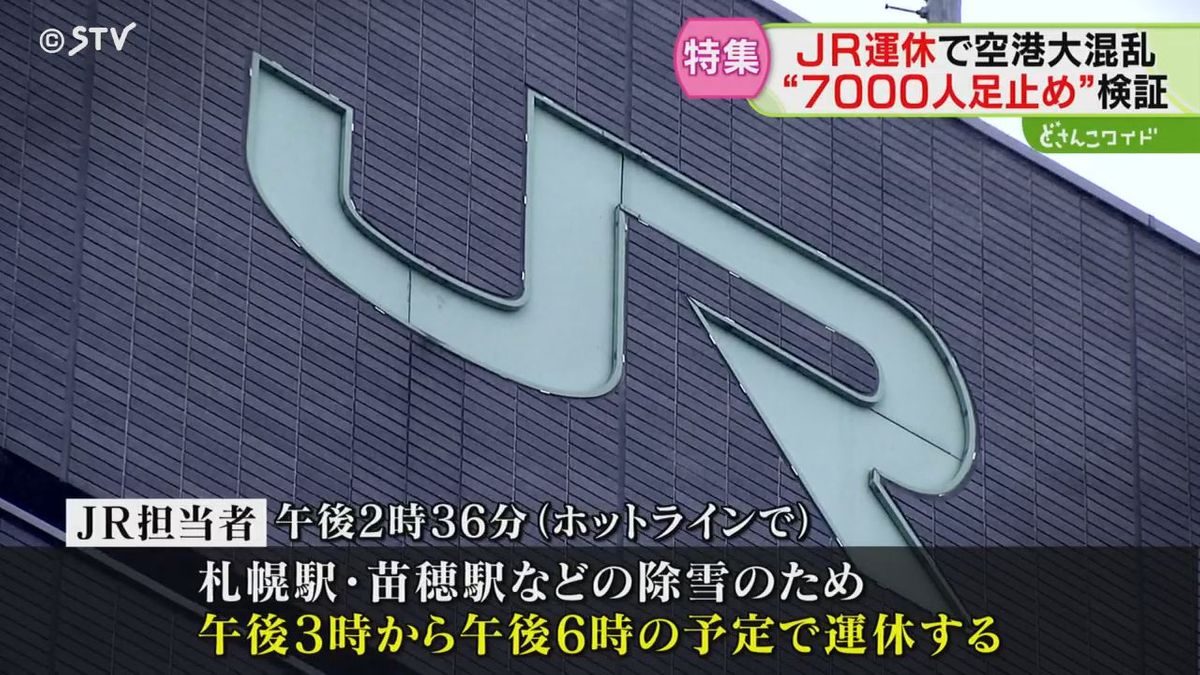 (JRの担当者)「札幌駅・苗穂駅などの除雪のため、午後3時から午後6時の予定で運休する」