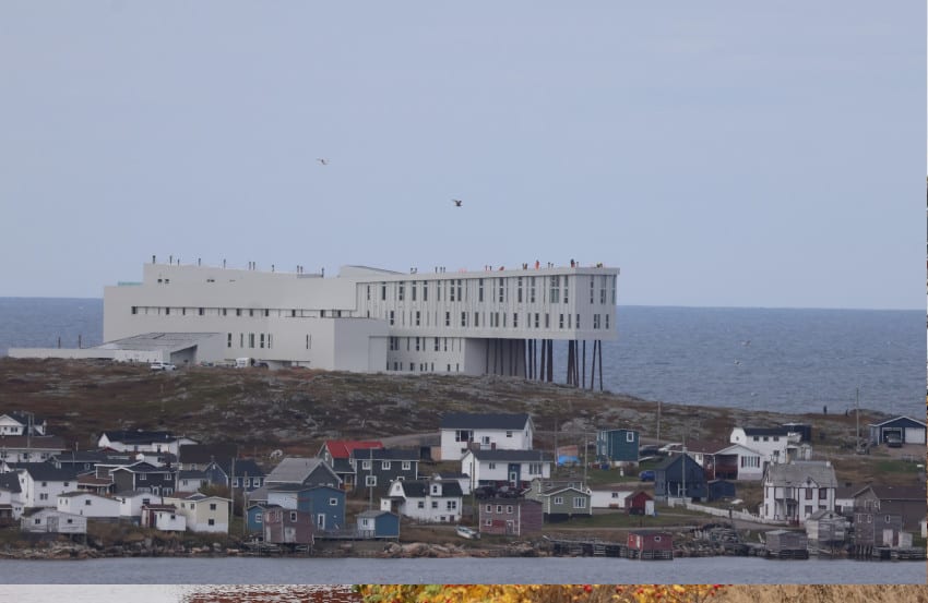 北大西洋に浮かぶフォーゴ島にそびえる《フォーゴ・アイランド・イン》。カナダで2軒しかないミシュラン「3キー」(ミシュランが新設したホテルの最高格付け)の1軒でもあり、富裕層をターゲットにした1泊28万の最高級のホテル。