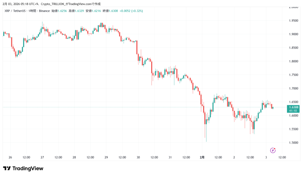 (参考 TradingViewのXRPUSDTチャート 1時間足)