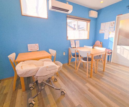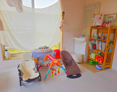 バウンザーやおもちゃも用意されており、子ども連れの方への気配りが感じられる、居心地の良い空間です。