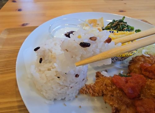 もっちりとした雑穀ごはんは、大盛り無料です。
