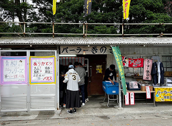 キャンプ期間中は、「宜野座村野球場」こと「バイトするならエントリー宜野座スタジアム」周辺において、観光総合案内所や宜野座村内の事業者による飲食出店のほか、グッズ販売が行われている。