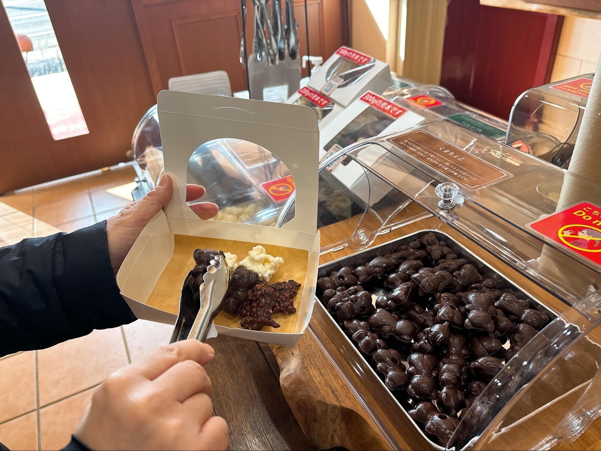 自分の好きなチョコを箱に詰めて、1gあたり9.7円(税込)で量り売りしてくれます。