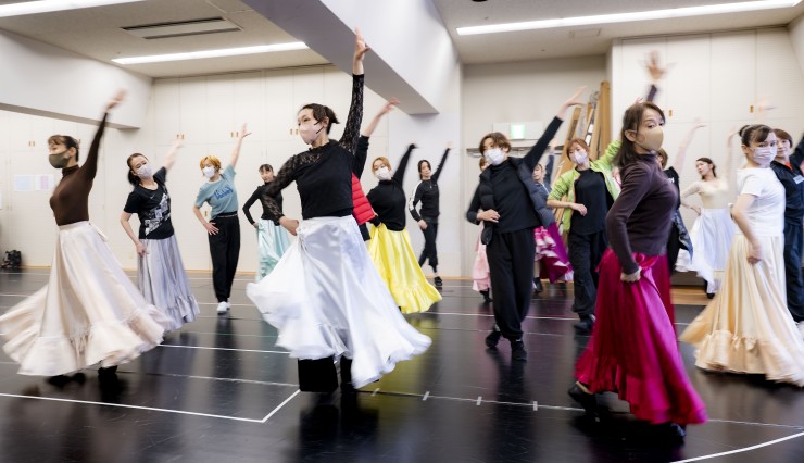 これまでの公演で耳にしたことのある懐かしい楽曲が流れる稽古場。この日は公演全体を締めくくる第3部の振り付けが行なわれていた。出演者の世代はさまざま。現役時代は同じ舞台に立つ機会がなかったOG同士もまるでずっと一緒に活動してきたような一体感で稽古が進んでいく。