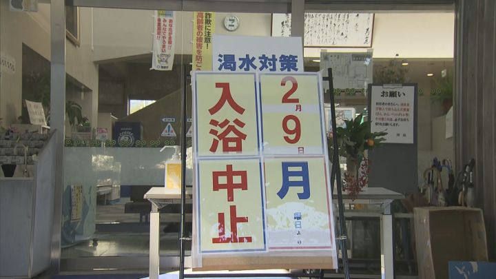 普段は平日でもおよそ150人が利用しているといいますが、年明けから水不足が表面化し、館内に節水を呼び掛ける掲示をするなどして営業を続けてきましたが、一向に雨が降らず、休業を余儀なくされました。
