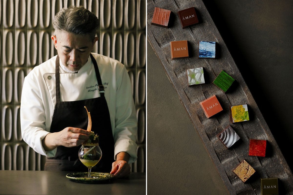フレーバーにもこだわっていて、上賀茂のバジル、城陽の無花果、丹波の栗や黒豆、宇治の有機抹茶など、京都産の厳選素材を使用。自然を尊重するアマンならではの世界観を、松尾シェフの熟練の技で表現しています。