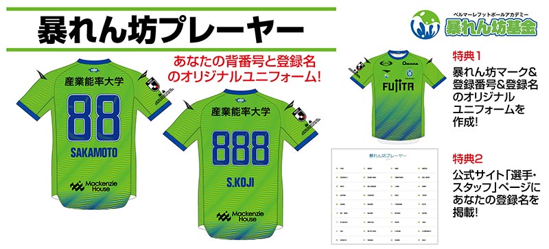 希望番号と希望ネーム入りのユニフォームを作成でき、且つトップチーム選手とともに公式サイトにお名前を掲載することができる「暴れん坊プレーヤー」の百年構想リーグ(半期)の募集を2月8日(日)より開始いたします。