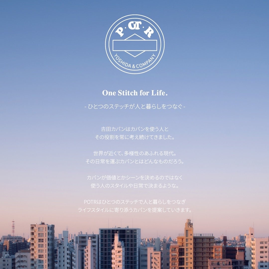 POTRは、「One stitch for Life. -ひとつのステッチが人と暮らしをつなぐ-」をコンセプトに、𠮷田カバンの長年にわたるモノづくりの経験をいかした、さまざまなライフスタイルに寄り添うプロダクトを展開するブランドです。