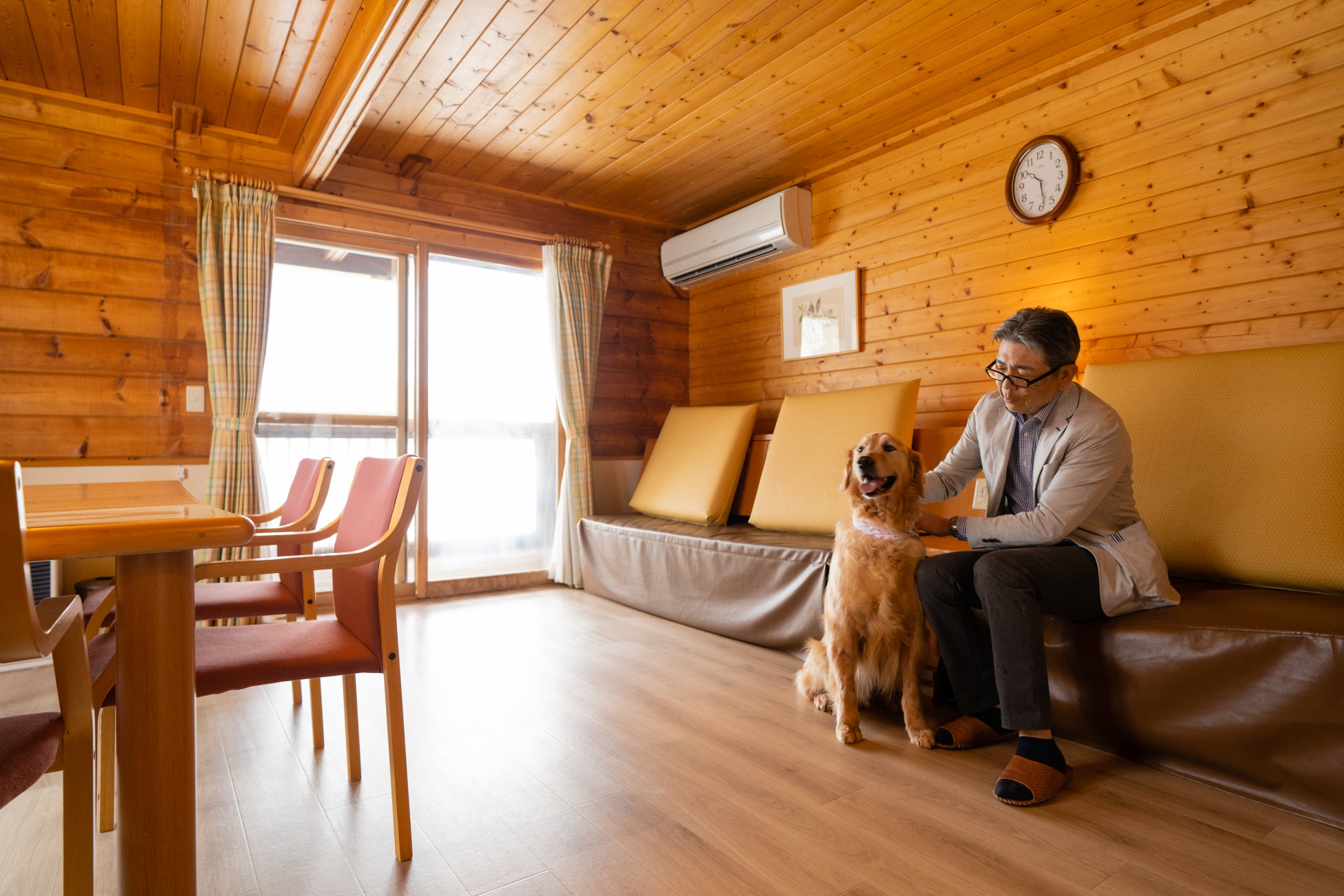 ツインルーム(最大3名)は少人数でのご宿泊におすすめです。ファミリールーム(最大6名)はベッド2つと和室を備えております。わんちゃんと泊まれるコテージ棟も3タイプご用意しております。