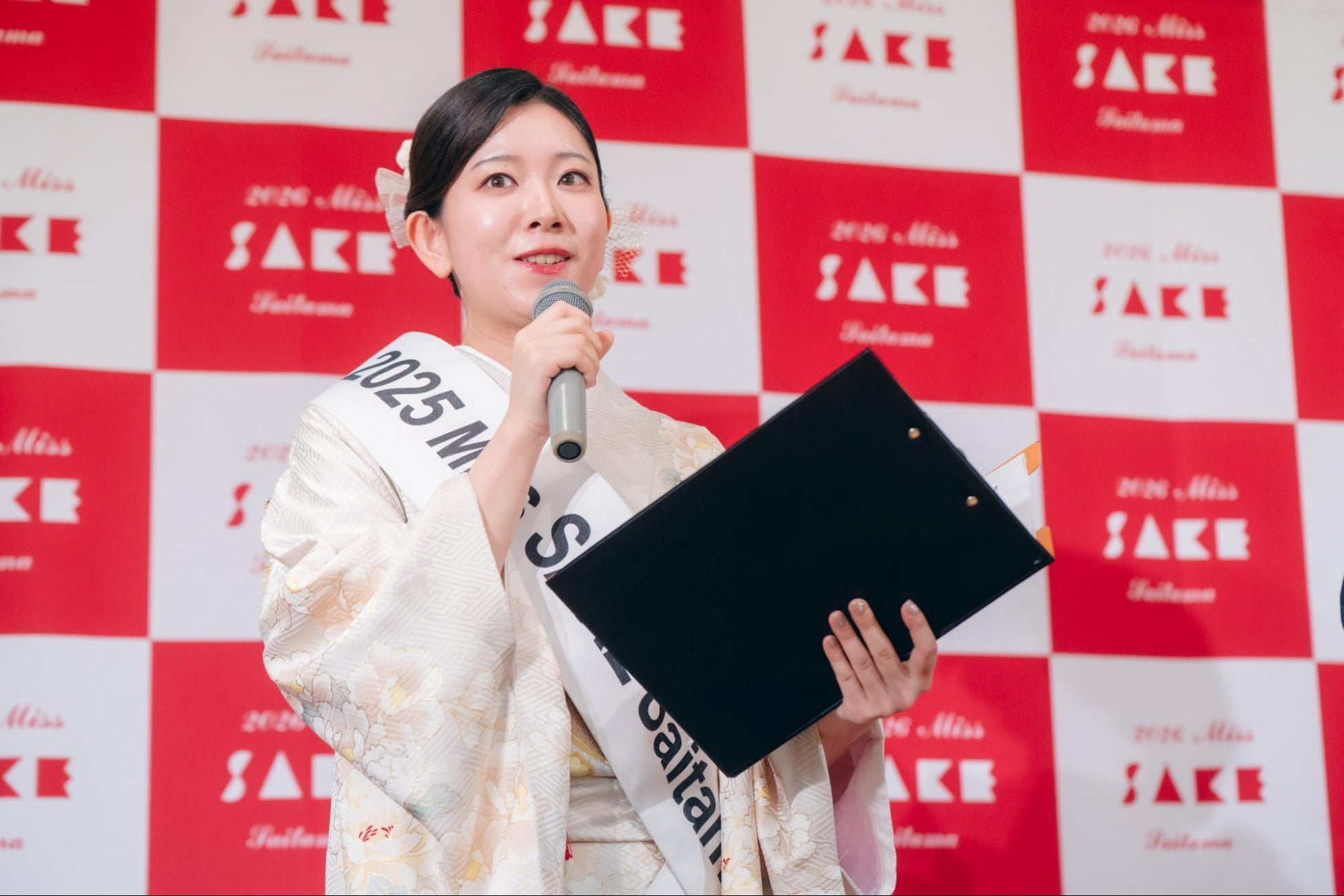 Miss SAKEは、伝統ある日本酒と日本文化の魅力を、日本国内外に発信する美意識と知性を身につけたアンバサダーを選出する目的で一般社団法人Miss SAKEが主催、2013年9月よりスタート致しました。外務省、農林水産省、国税庁、観光庁、日本酒造組合中央会等の後援のもと開催された2013年10月開催の選考会において、初代の「2014 ミス日本酒(2014 Miss SAKE)」が誕生。それより13年間、日本国内だけでなくハワイ、ニューヨーク、ロンドン、ミラノ、バルセロナ、シドニー、香港等、世界各国において、日本酒を切り口にした日本の食・文化に関する啓発や、日本への観光誘致活動を年間400件以上行っております。