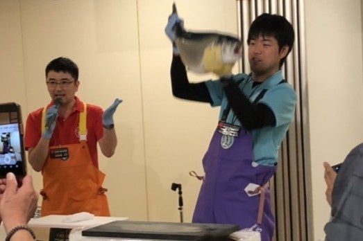 ショー終了後は先着順で「青い森紅サーモンのお刺身」を販売!