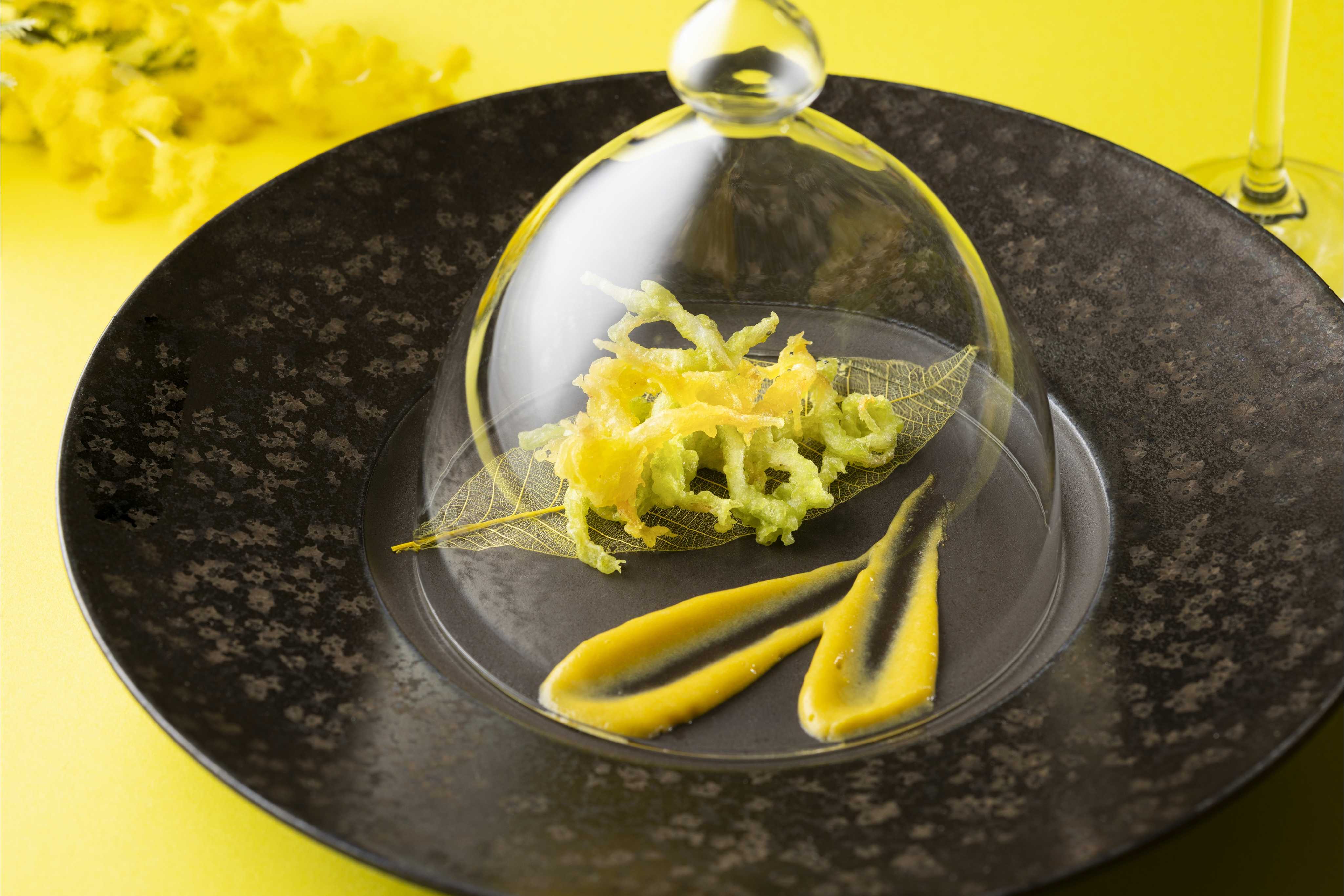 「春の陽だまりを思わせる優しい黄色をテーマに、地元・山梨の食材を生かし、和洋の調和で丁寧に仕上げました。一皿ごとに春の彩りと香りを散りばめ、菜花や桜鯛などの旬の春食材と、ミモザカラーの華やかさで、春の幸福感を感じていただけるコースに仕立てています。季節の訪れとともに、五感で味わう特別なひとときを心ゆくまでお楽しみいただければ幸いです。」