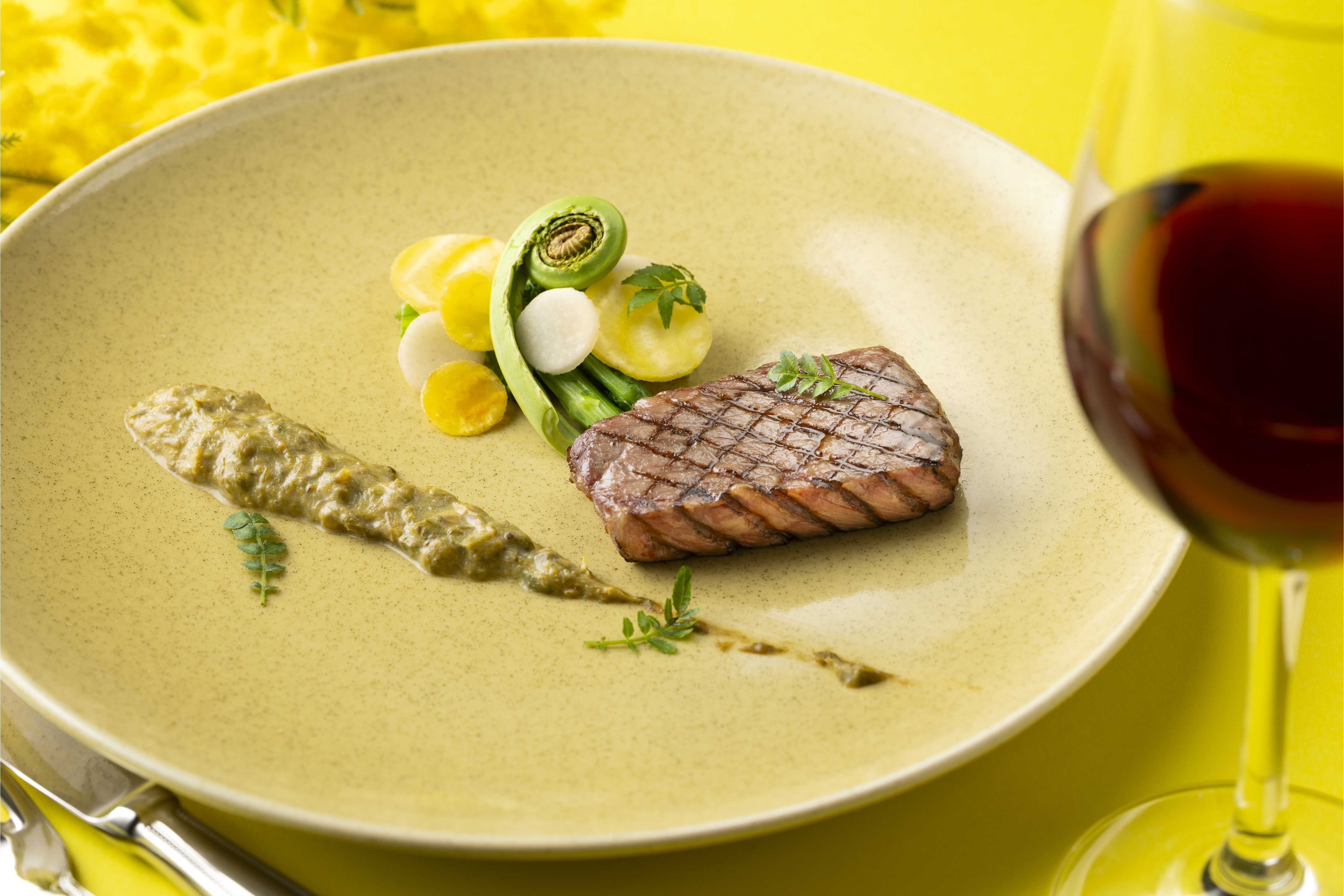 甲州ワインビーフサーロイン ふきのとう味噌と山菜添え