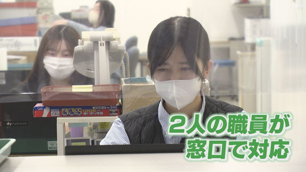 遺失物センターの中に入ると、2人の職員が窓口で対応します。