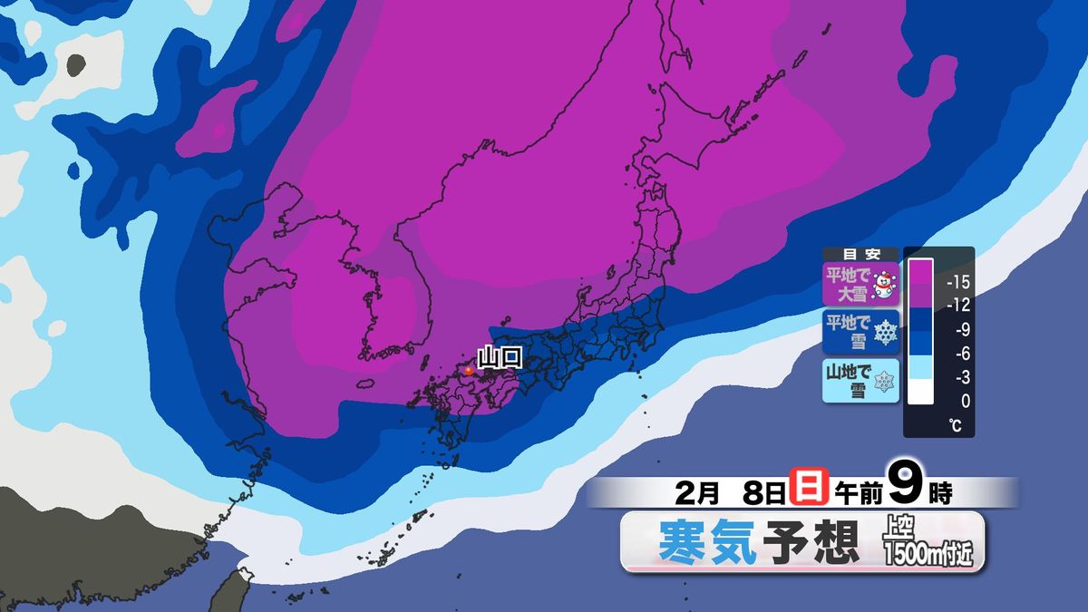 一気に真冬の寒さになると同時に、8日(日)には紫色で表示された非常に強い寒気が流れ込む予想で、平地や市街地まで積雪や路面凍結のエリアが広がるおそれがあります。