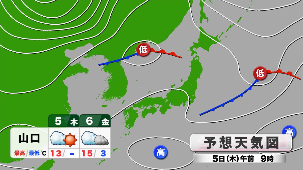 さらにあす5日(木)は、日本海の低気圧に向かって吹く南風が県内に流れ込み、最高気温は15度と一気に春のような暖かさ。