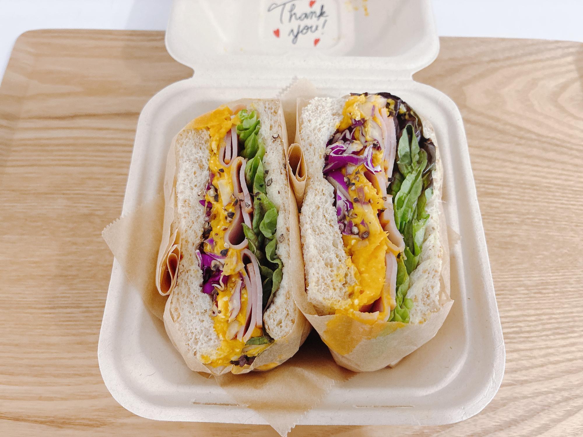 こちらのお店はタッチパネルでスマートに注文するスタイルです。メニューには、農家直送のオーガニック野菜をたっぷり使ったサラダボウルや、フルーツ満載のアサイーボウルなど、体が喜ぶヘルシーなラインナップがずらり。どれにしようか迷ってしまいますが、今回はサンドイッチをテイクアウトしました。